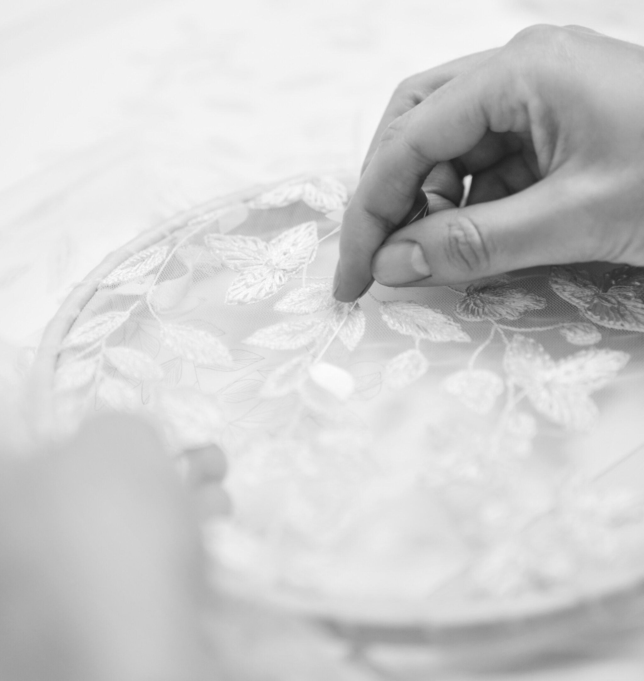 Once the shape and style of dress has been selected by the client, the bespoke embroidery process will begin.
