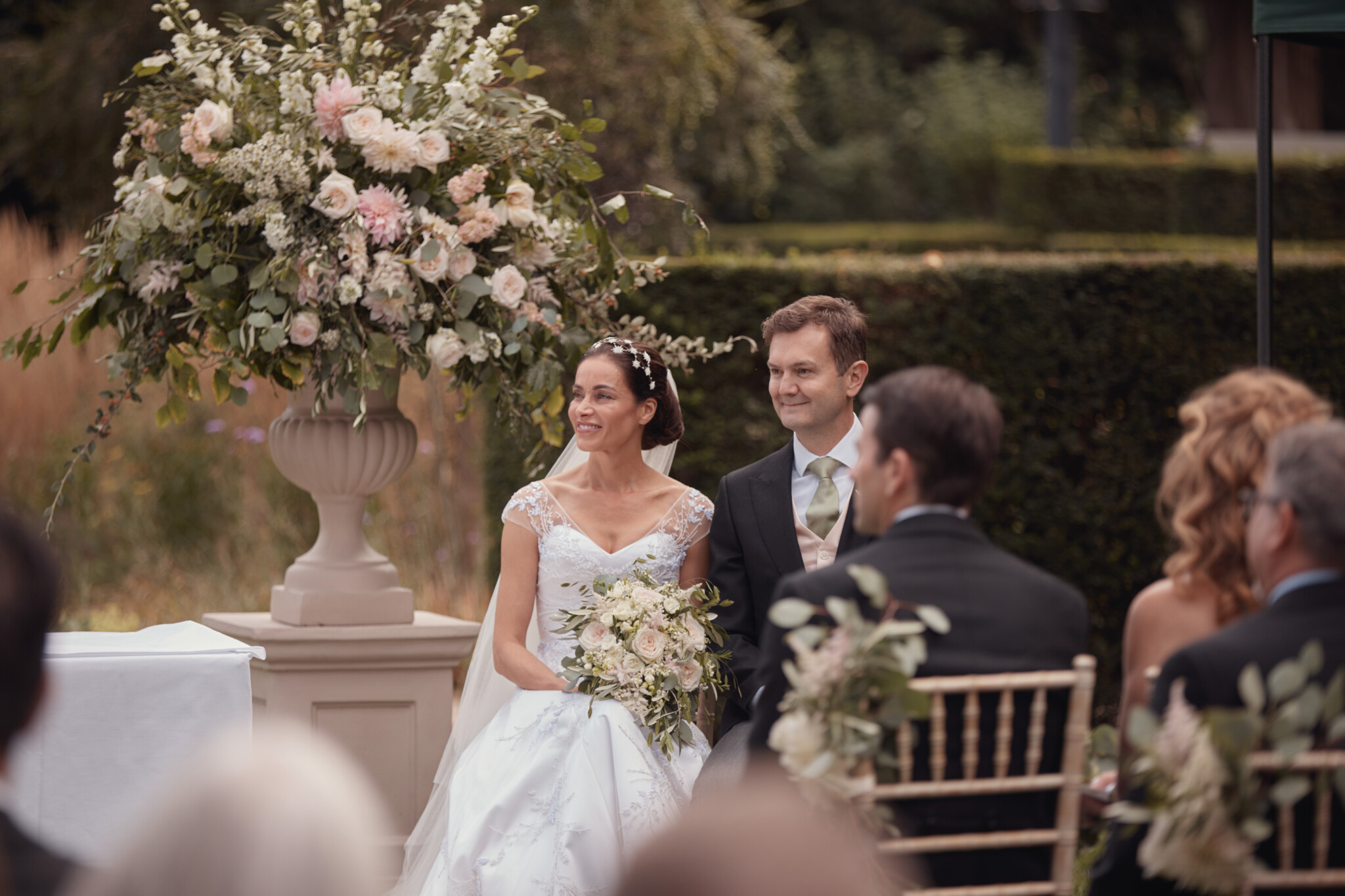 The satin gown was expertly fit to Alex during a meticulous couture process – a special experience that becomes a cherished part of the wedding planning journey for Phillipa Lepley brides. Bespoke elements such as deepening the sweetheart ‘V’ neckline were refined on her during fittings to ensure it best complemented her frame.