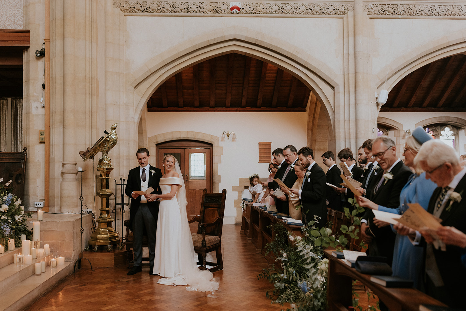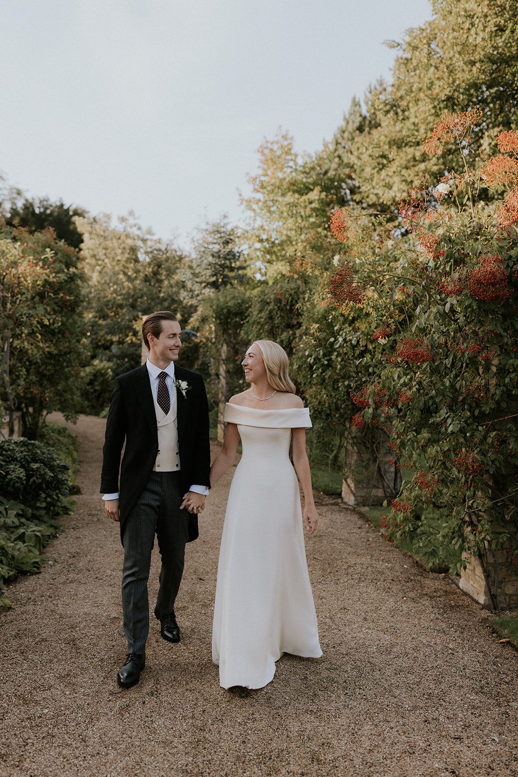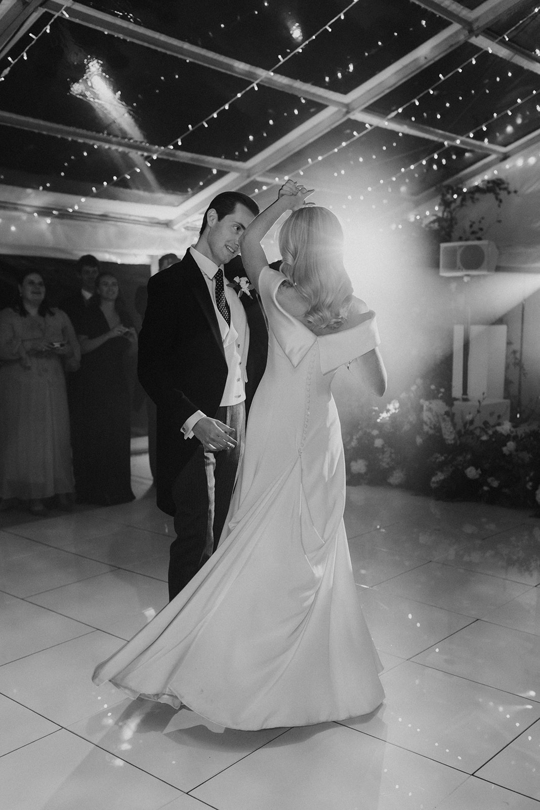 Pollyanna paired her minimalist wedding dress with a delicate hand-embroidered two-tier silk tulle ‘Lily of the Valley’ veil. Inspired by flora and fauna, Phillipa often incorporates the beauty of the natural world into her fine hand-embroidery. A Phillipa Lepley classic – Lily of the Valley – petals were scattered organically across luxury French silk tulle and hand-embroidered on to create Pollyanna’s veil.