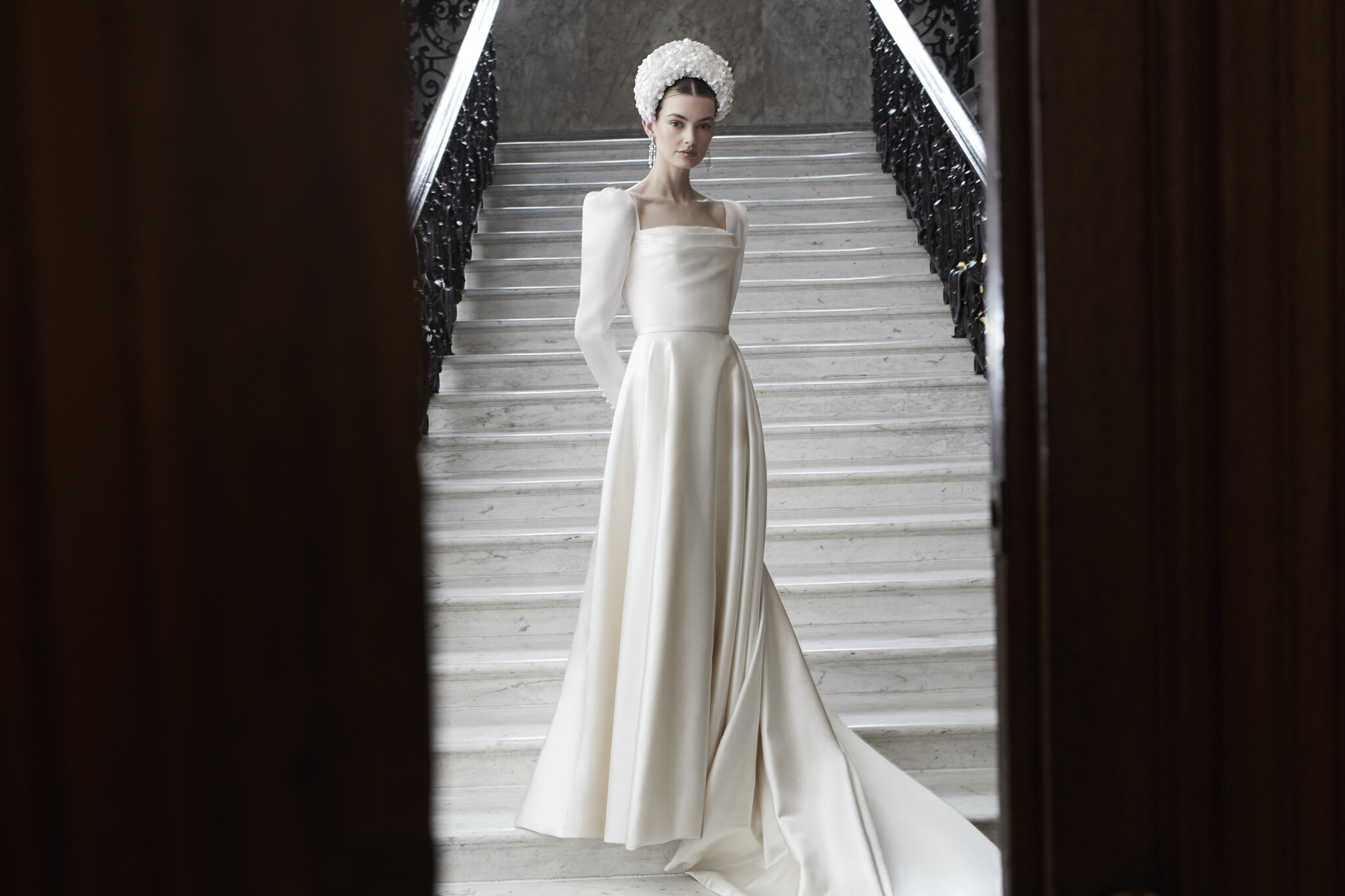 Phillipa and her team worked for months to create the perfect shade for this collection’s pink dresses in both duchess satin and tulle, inspired by the delicacy and graceful hue of ballet shoes.