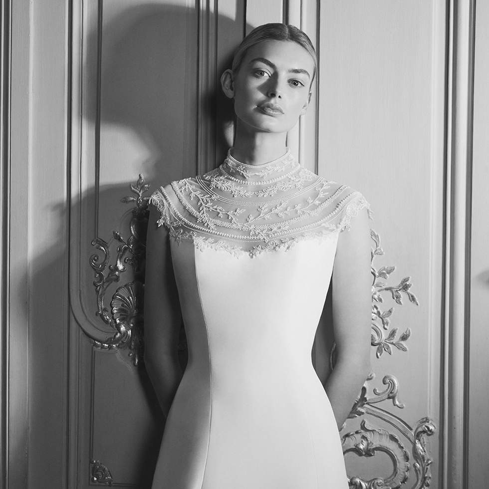This ever-changing source of natural wonder inspired Phillipa to create the Arabesque collection, which includes the exquisite, delicate Meadow dress, embroidered with hundreds of flowers. Just one skein of thread and classic couture techniques – including satin stitch, French knots and stem stitch – are used for each flower to achieve the requisite lightness, enhanced by the Meadow’s diaphanous tulle layers.