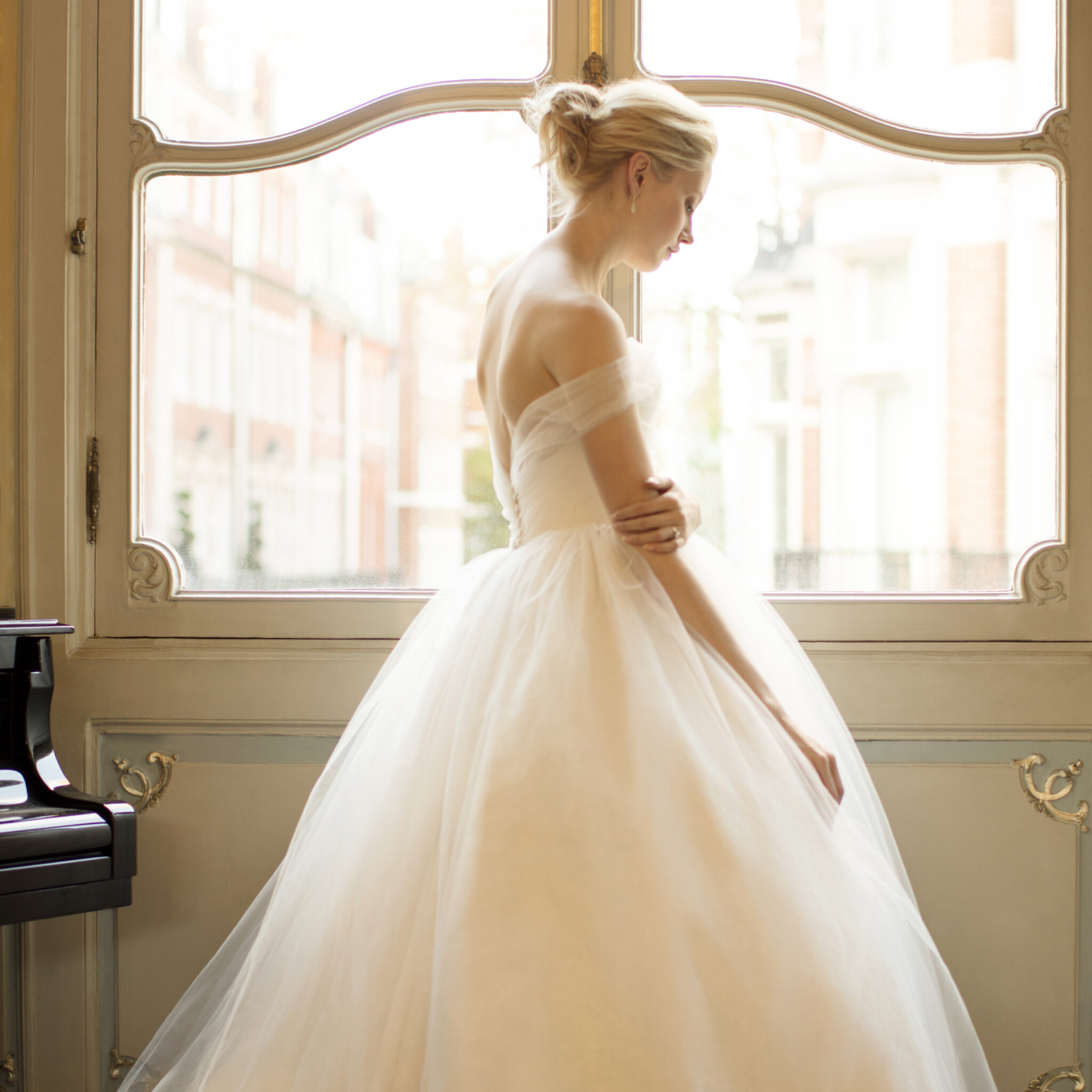 Each gown is custom-made and handcrafted at the London atelier using Italian silks, fine French laces and bespoke embroideries designed in-house. Every detail is executed with precision, ensuring an exceptional fit and finish.