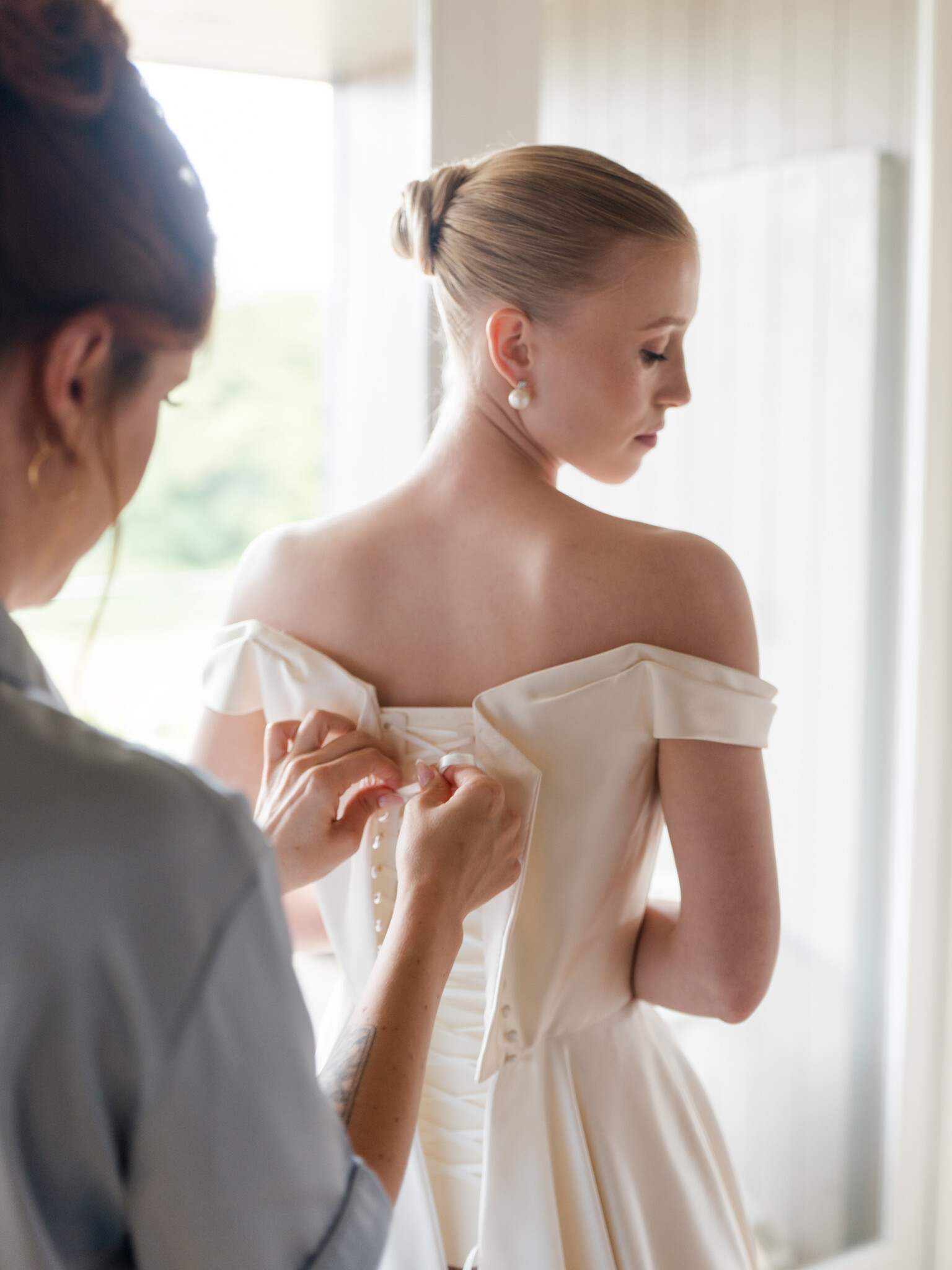 A custom-made hidden corset is the foundation for every dress, tailored precisely over several fittings. These specially designed corsets, created by the Atelier’s highly skilled team, enhance the waist and define the body, ensuring the most beautiful silhouette and a dress that fits like a second skin; clients comment frequently on just how comfortable the corsets are.
