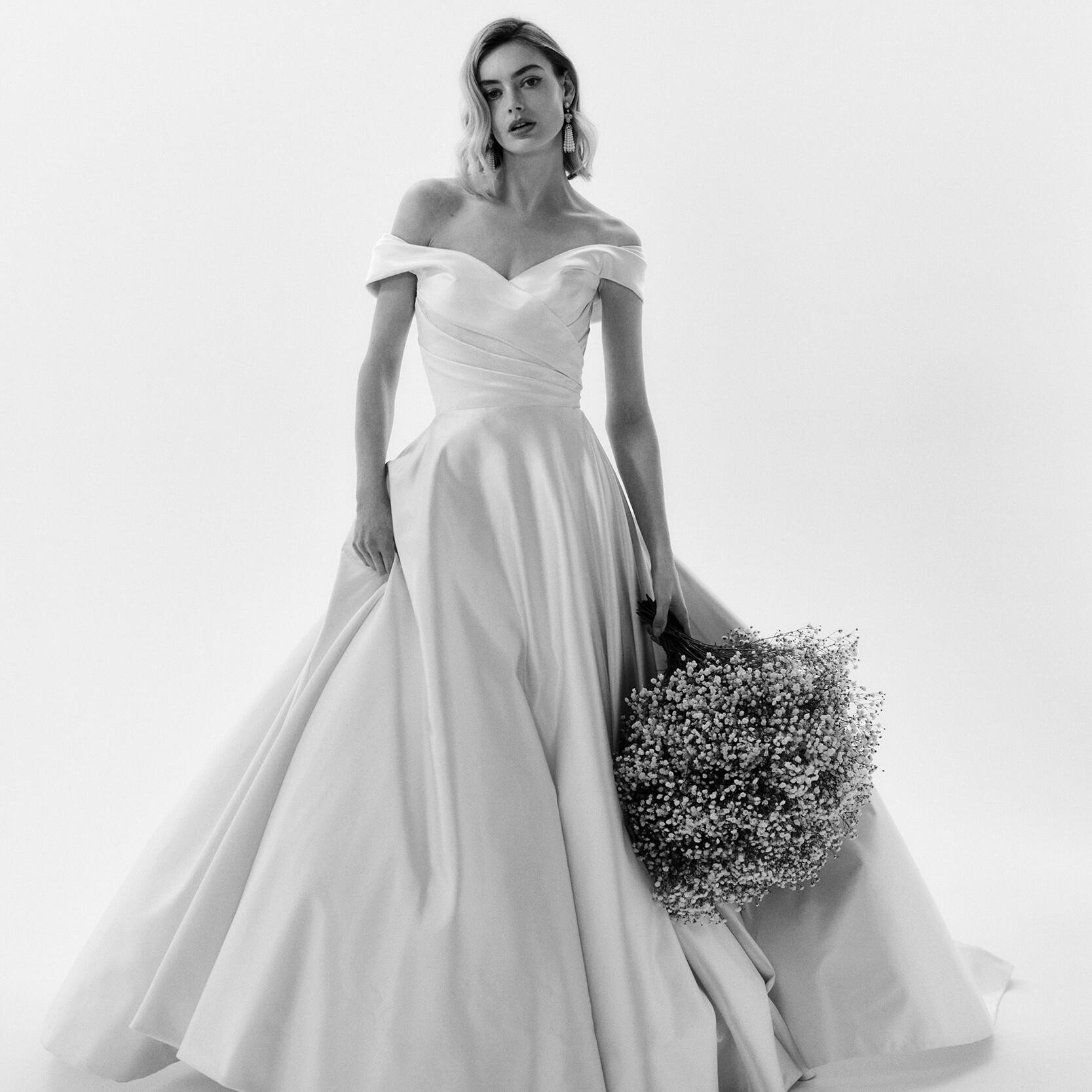 Vienna Low Shoulder Bow An iconic Phillipa Lepley design, ‘Vienna Low Shoulder Bow’ features an off-the-shoulder duchess satin bodice with hand-tied bows, and a full satin organza skirt. Discover