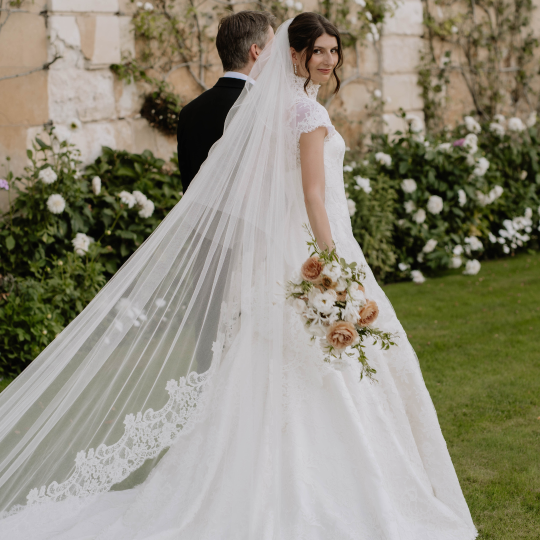 Phillipa Lepley bride Harriet Phillipa Lepley bride Harriet wed in a silk zibeline couture wedding dress paired with a hand-embroidered silk tulle Wildflower Meadow veil. Discover