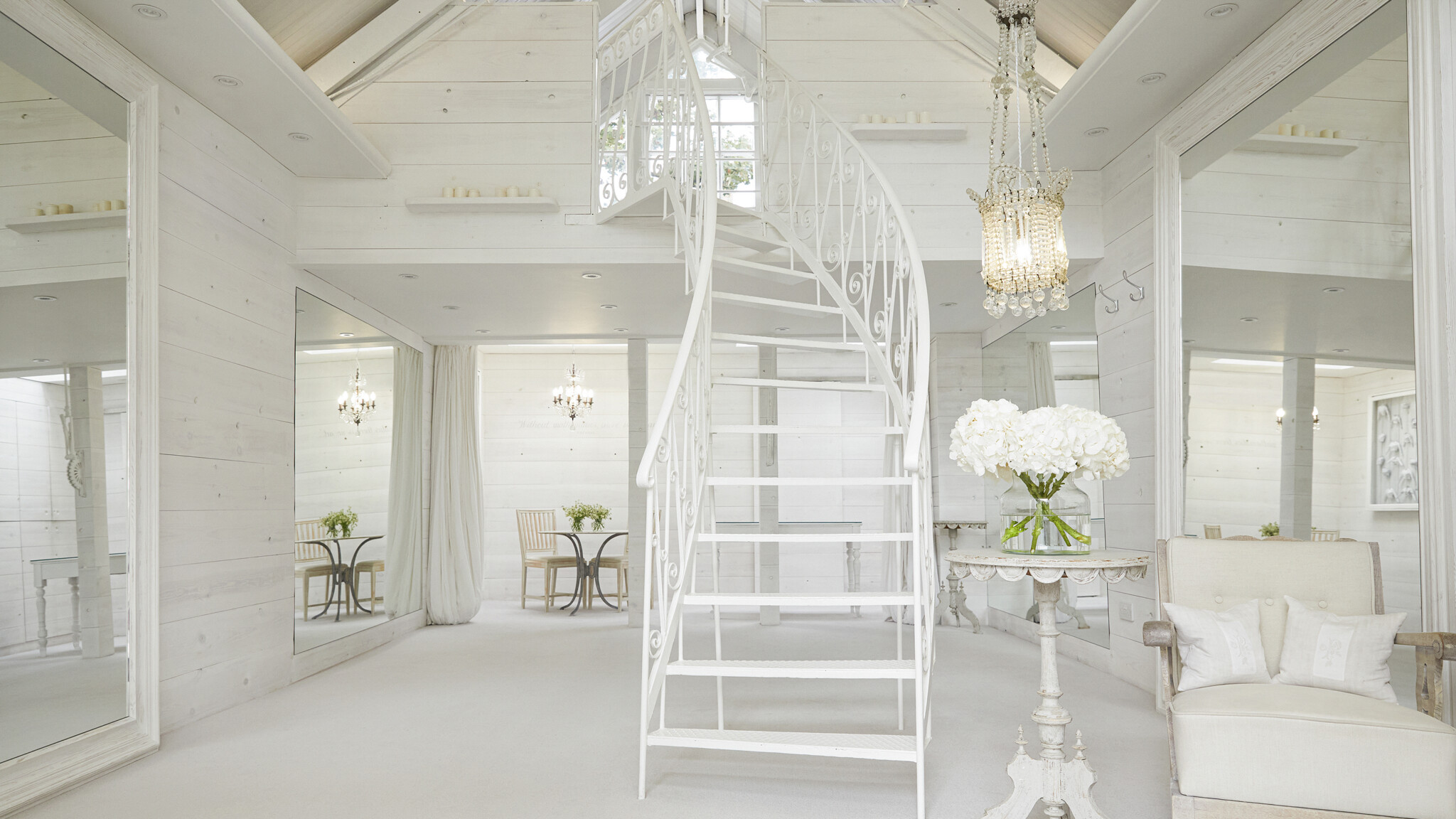 A testament to Phillipa’s passion for beauty, both The Shop and Conservatory spaces were personally designed by her. Adorned with white and natural woods, vintage chandeliers, and carefully sourced antiques, these spaces offer the epitome of luxury. Abundant in light and mirrors, they allow clients to witness the unrivalled beauty of a Phillipa Lepley dress.